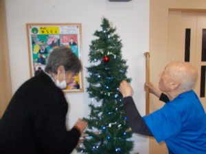 午後はクリスマスツリーの飾り付け