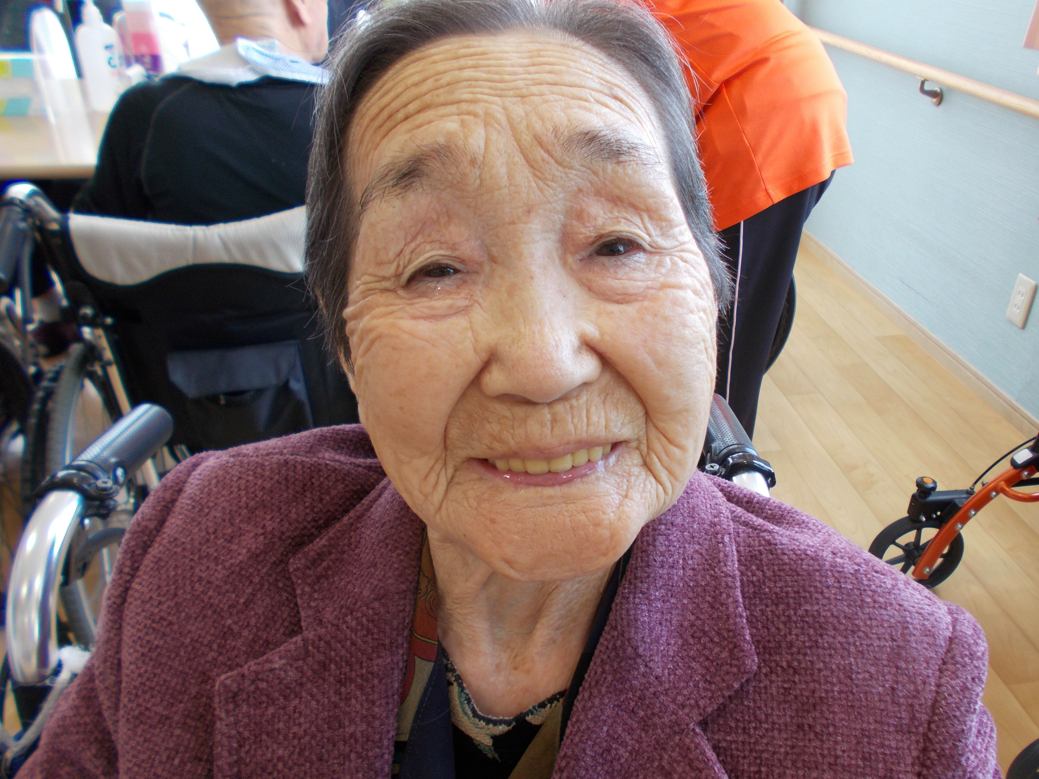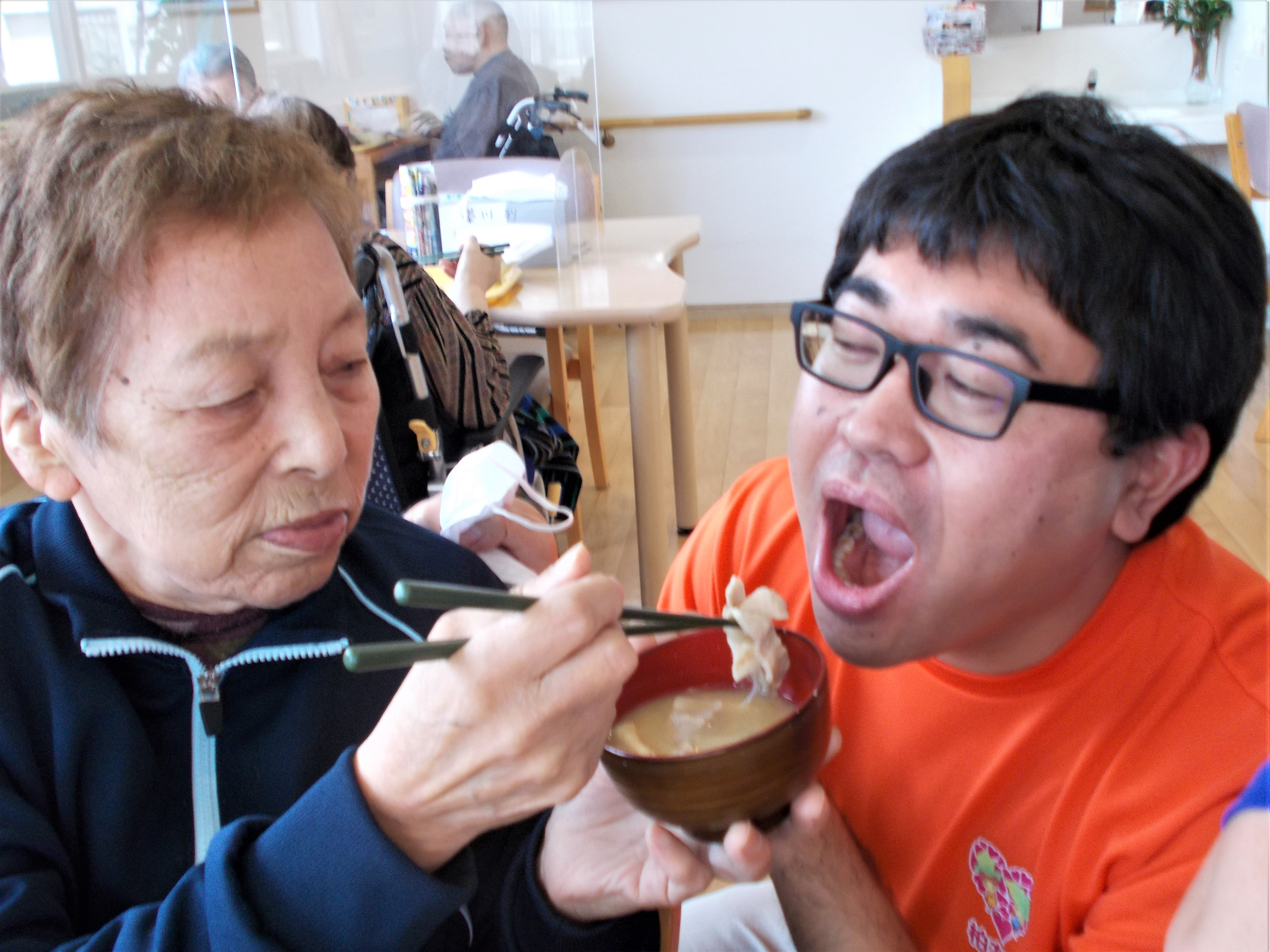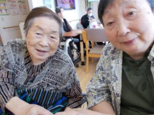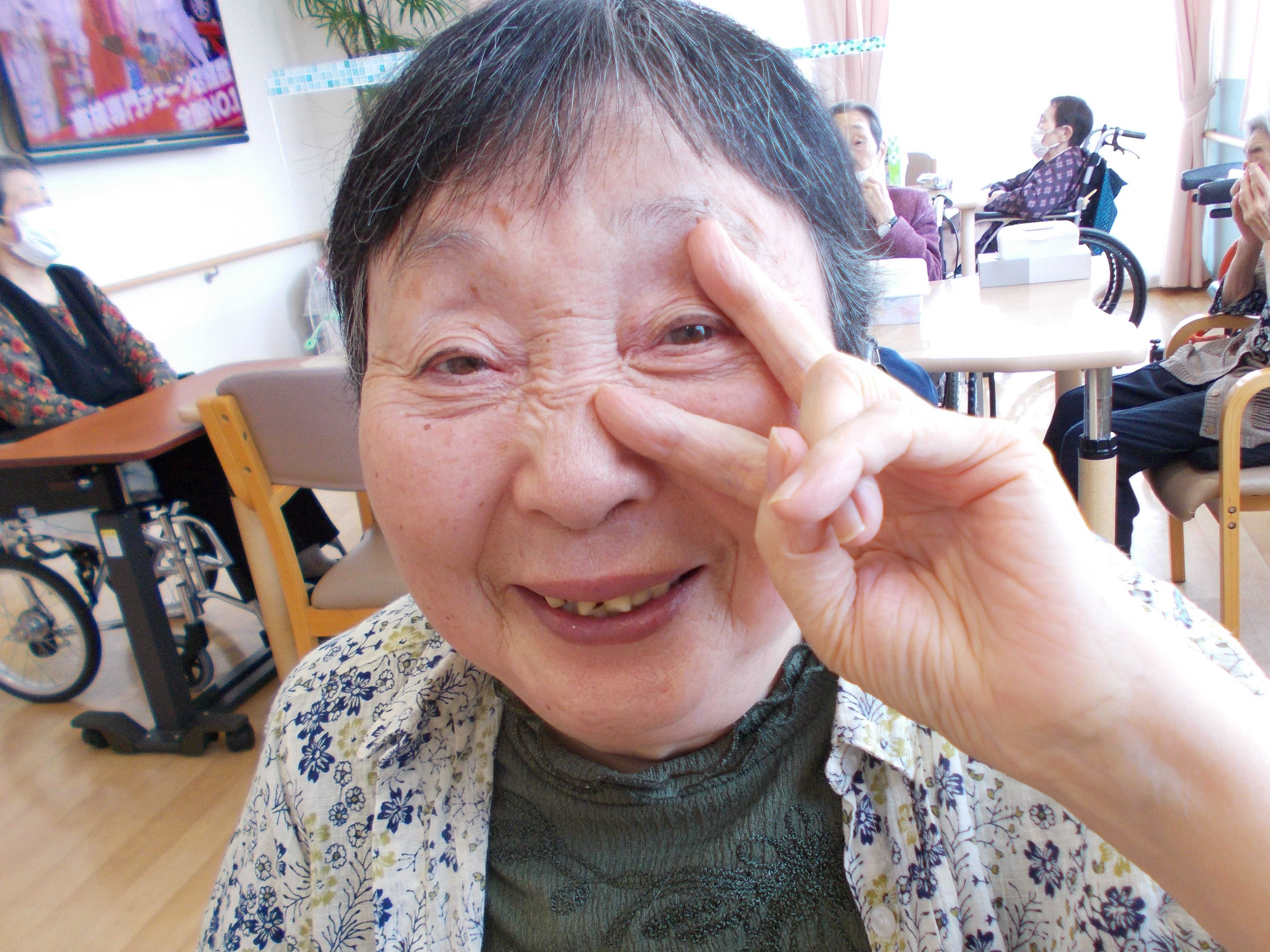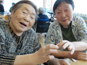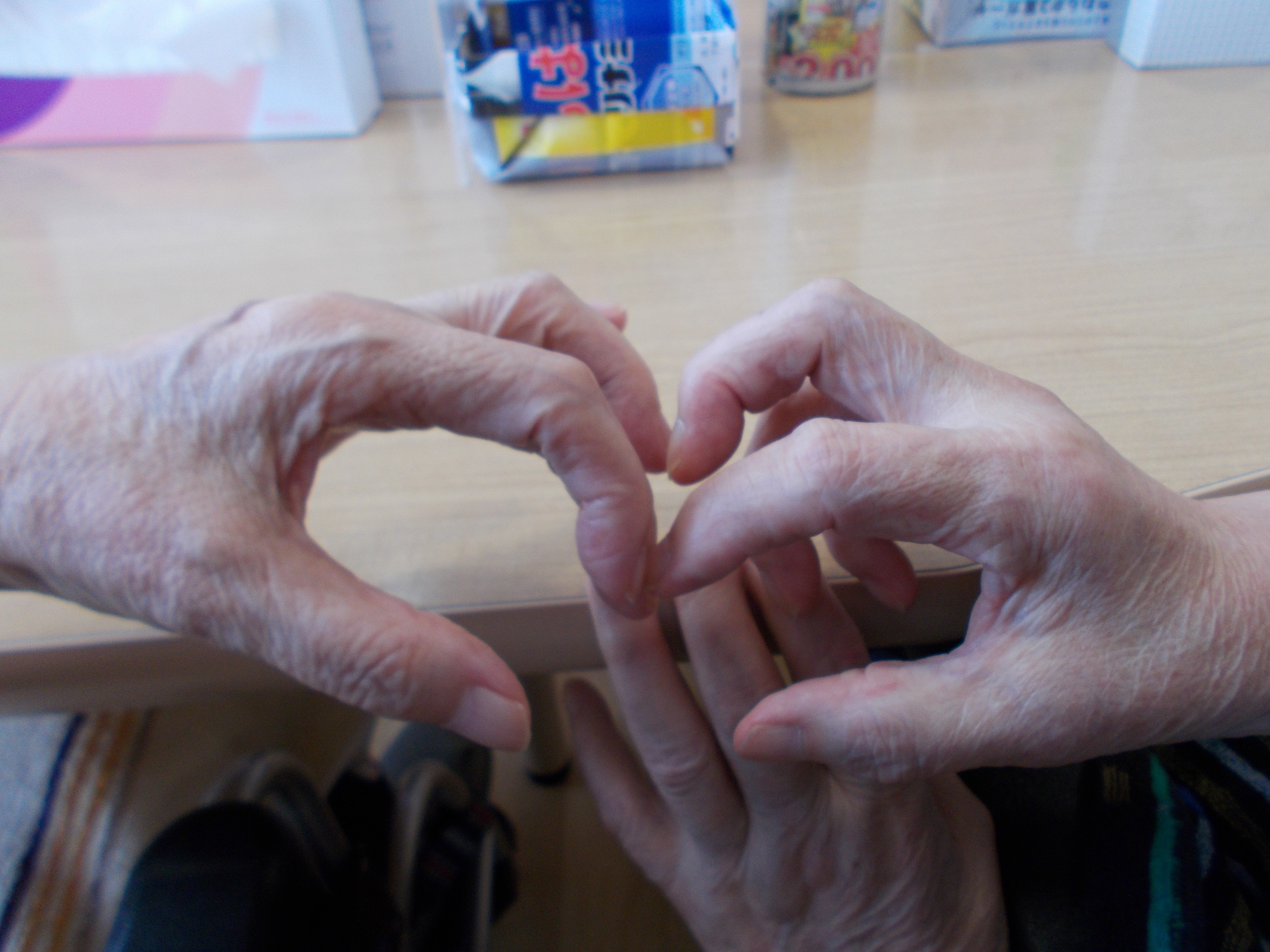「なに?指でハート?どうやってやるだば、やってみる。」とノリノリな利用者様
