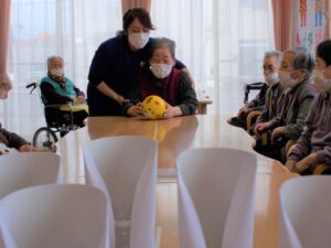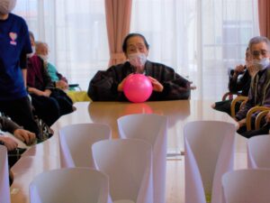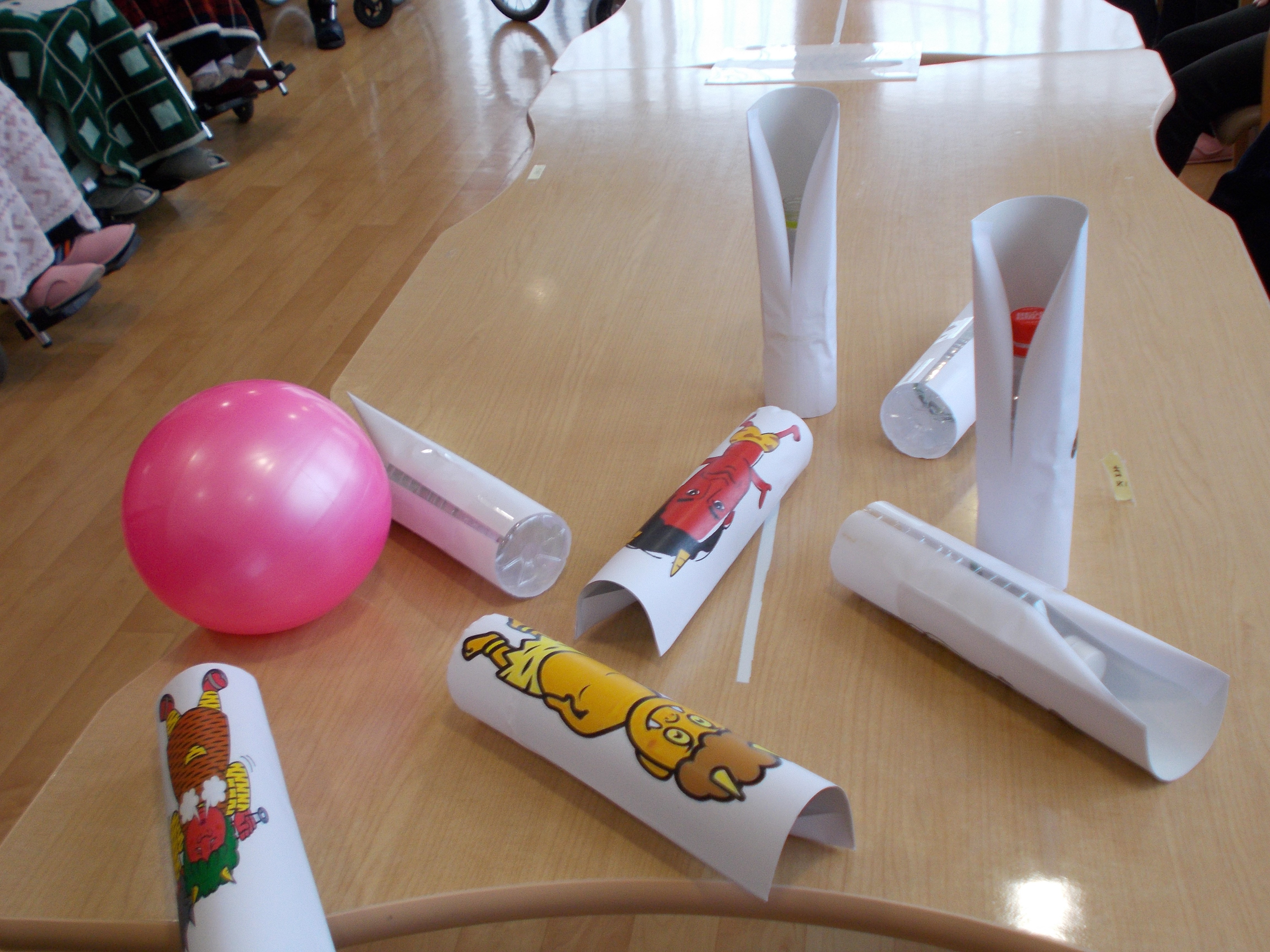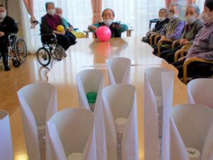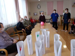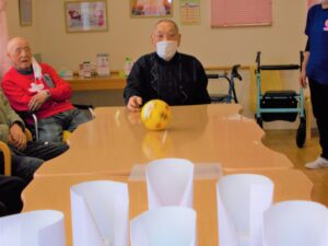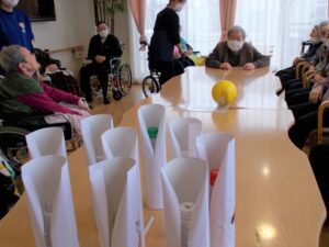 鬼付きペットボトルを倒して利用者様に厄をはらってもらいます。