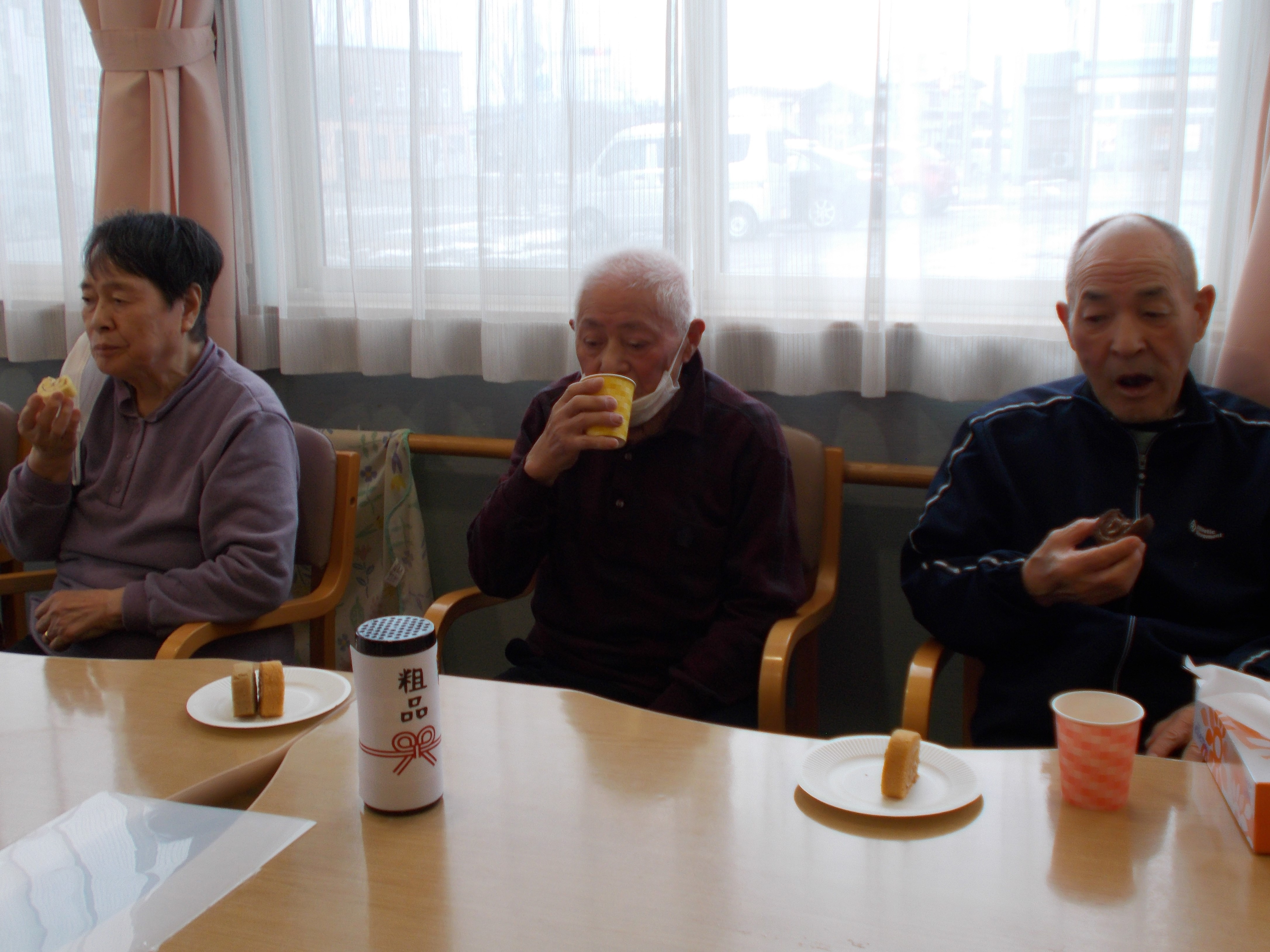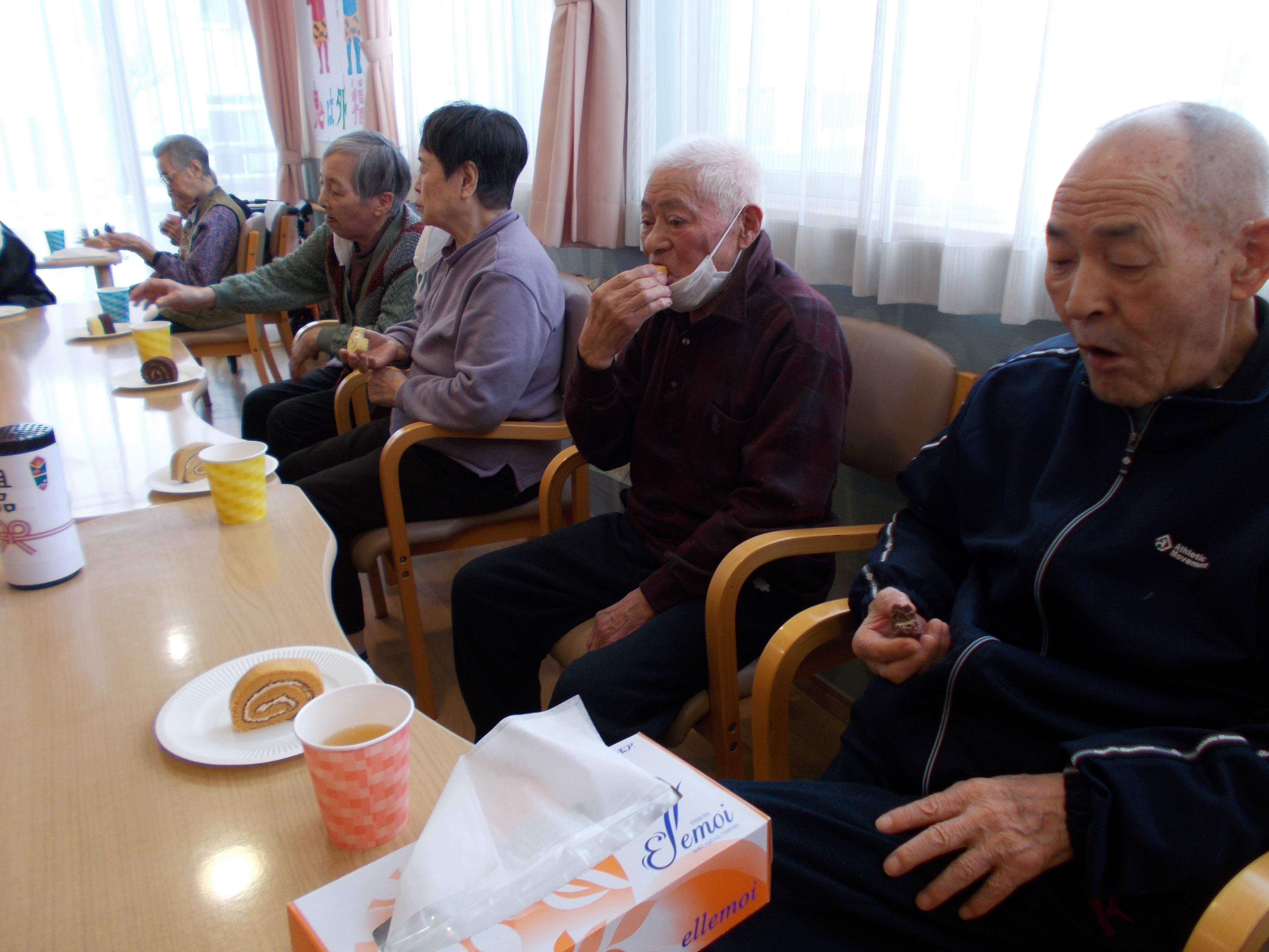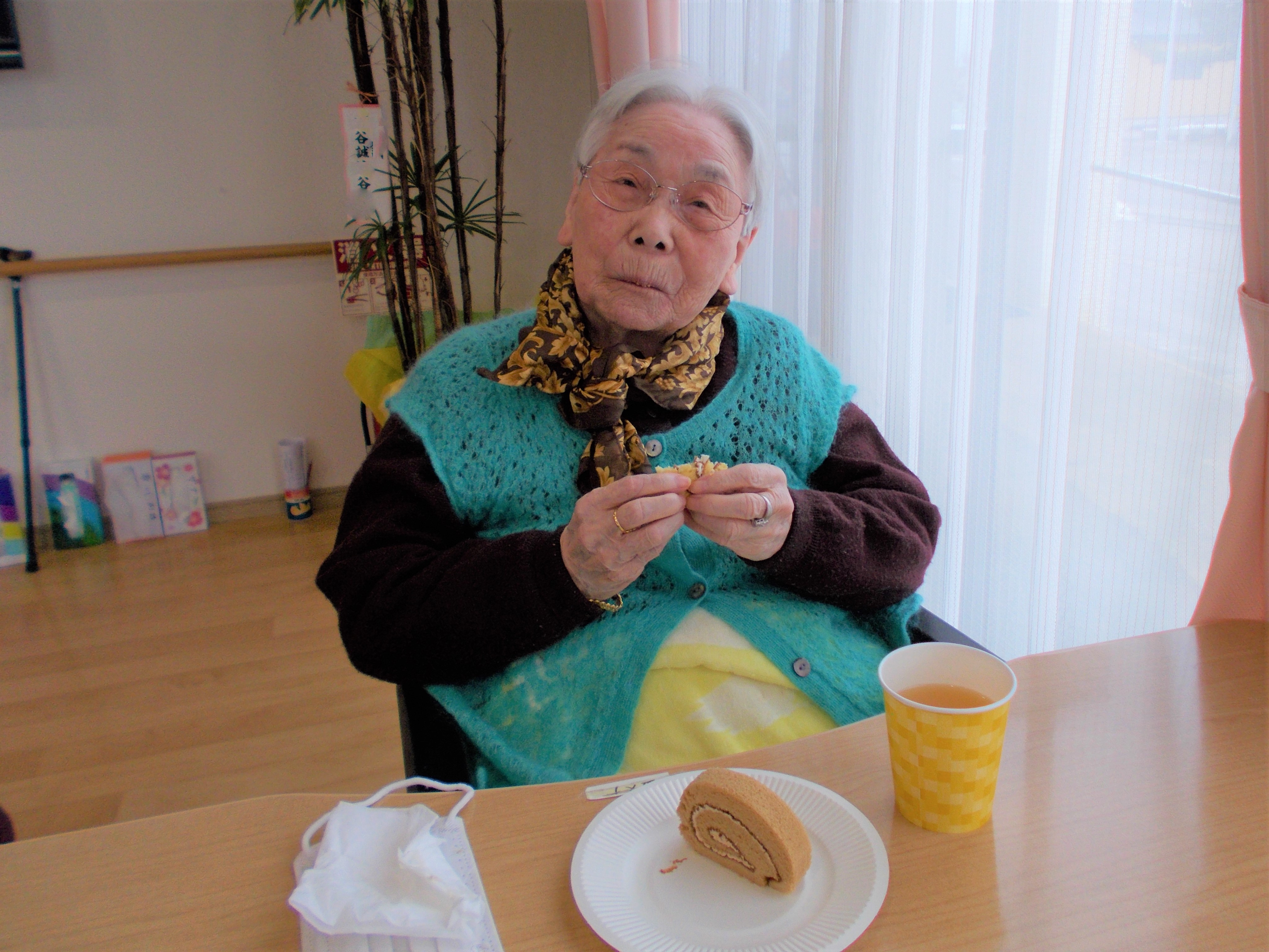 ジュースとロールケーキを皆さんで頂きましょう。
