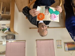 職員から手作りのカードをプレゼント