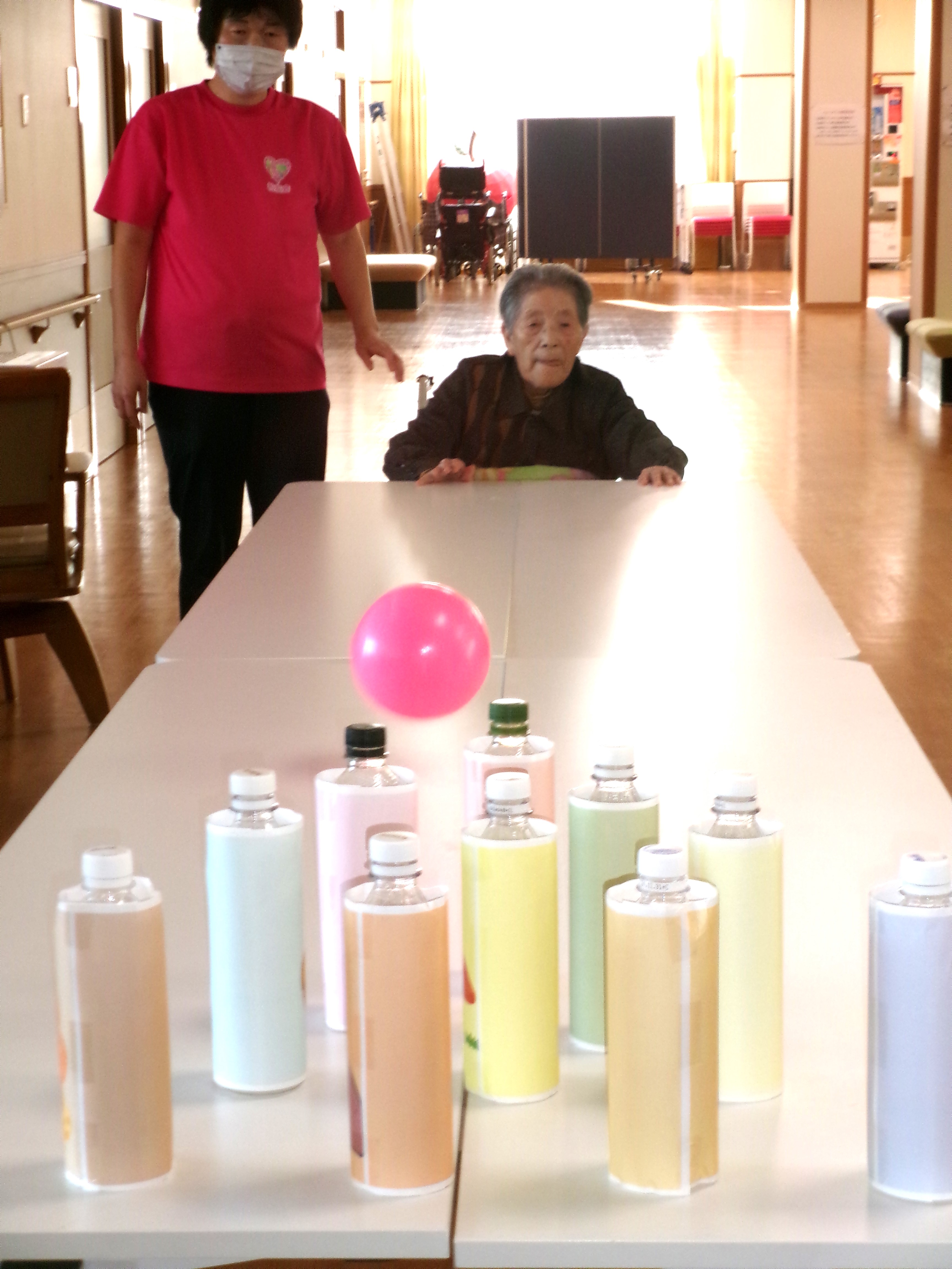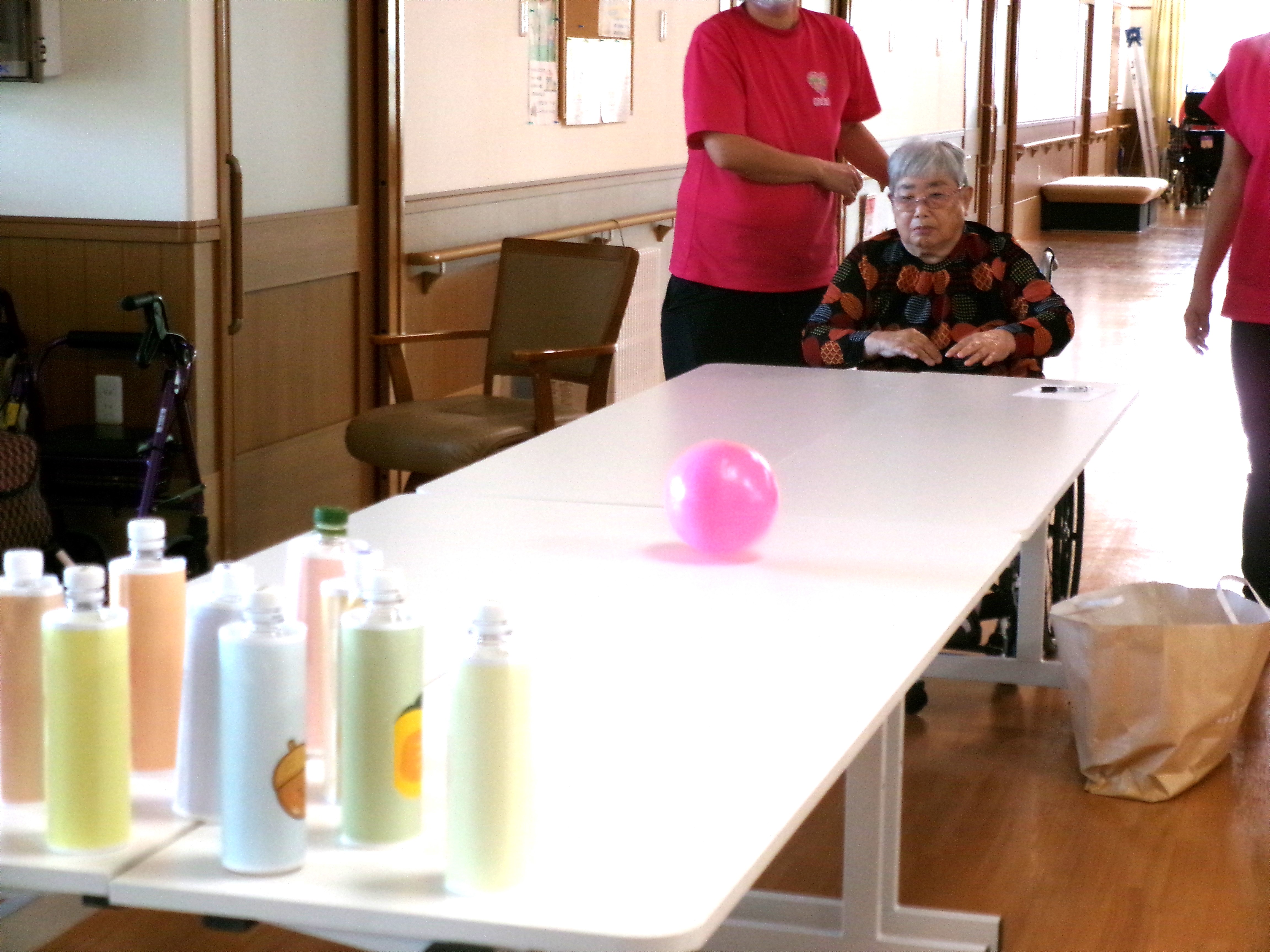 ボールを投げる 秋の味覚ボウリング大会