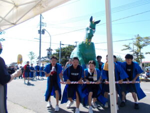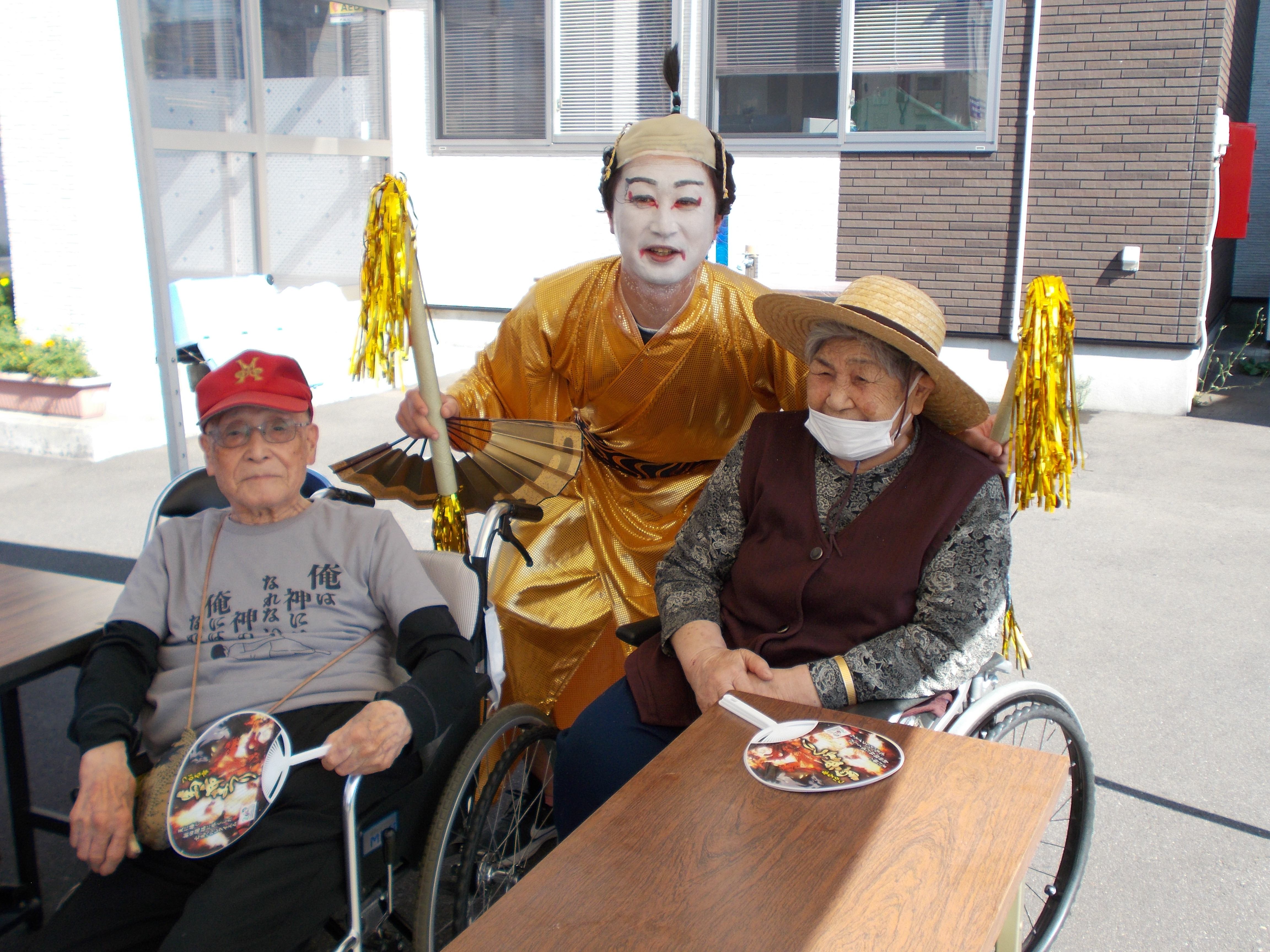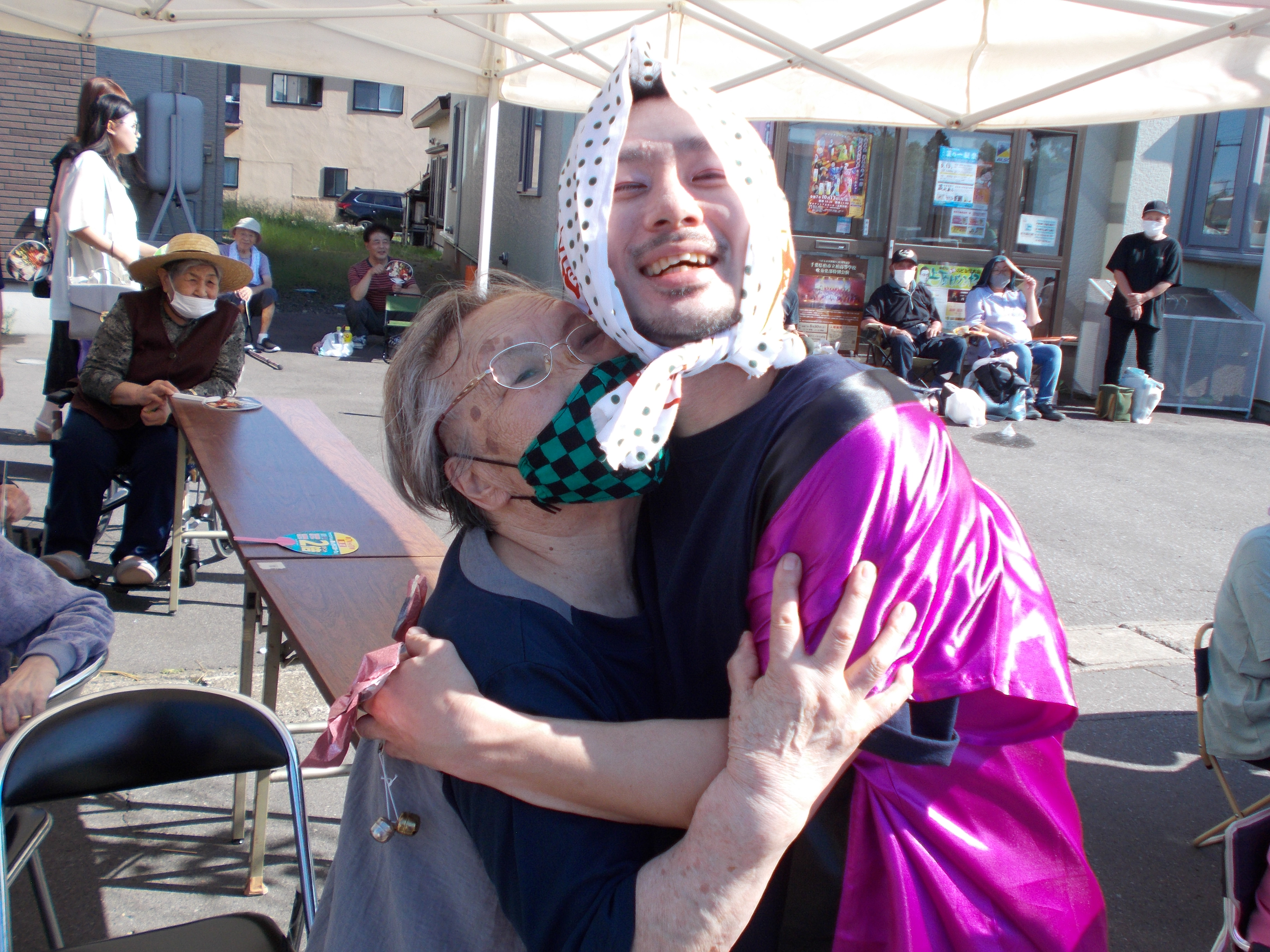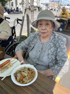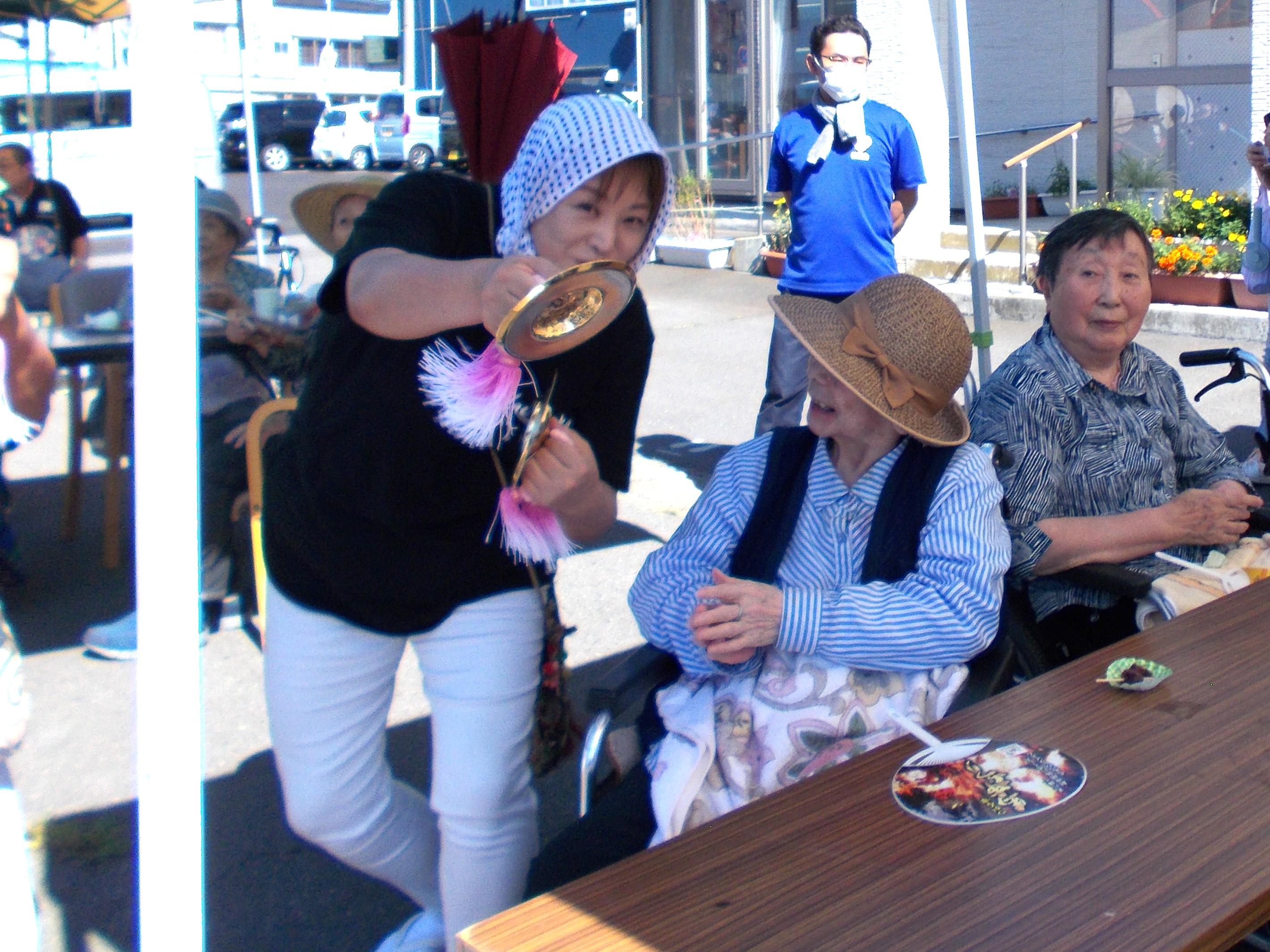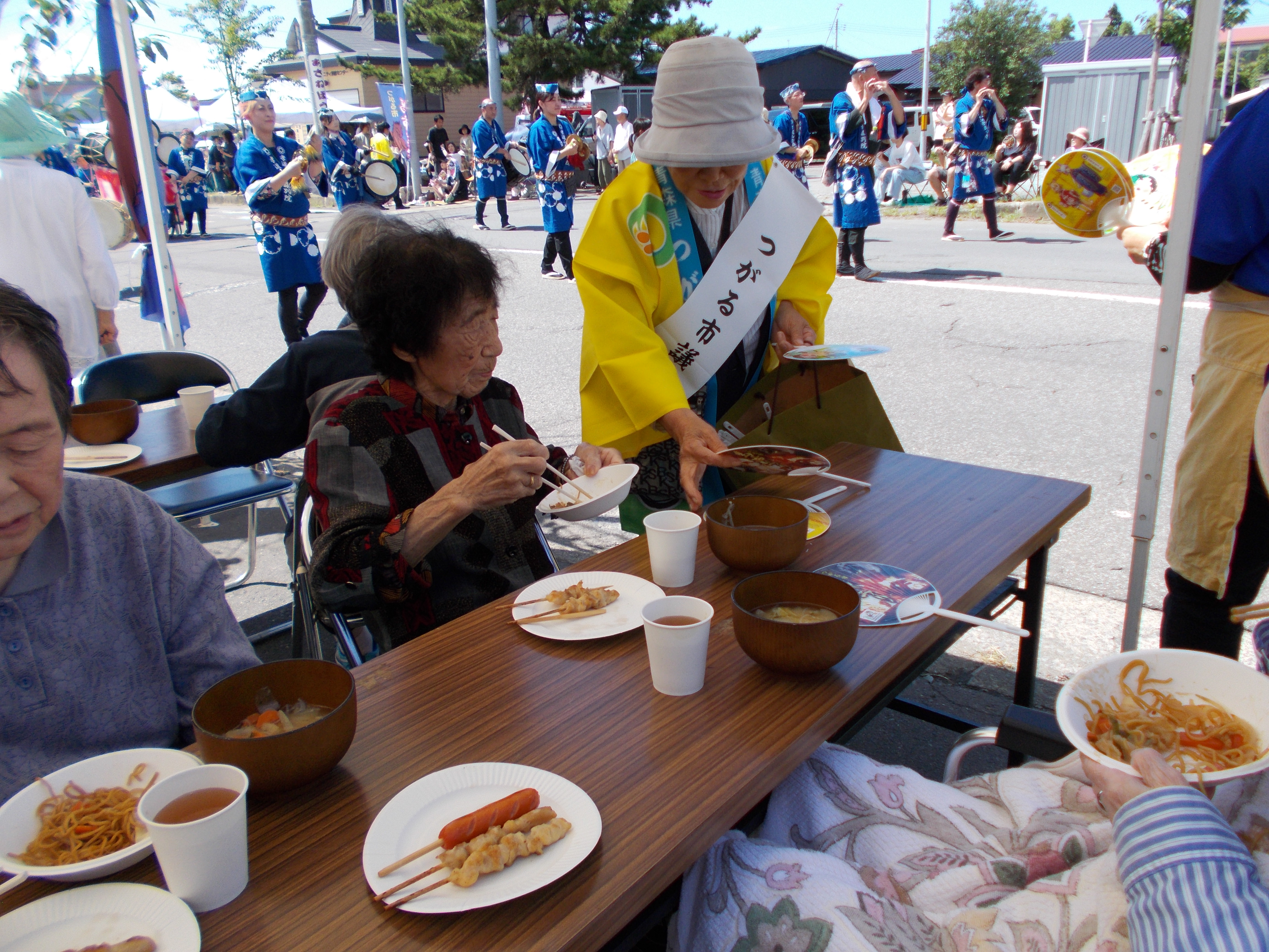 お囃子の方もテントの中まで来てくれ お祭り気分を盛り上げてくれました
