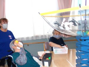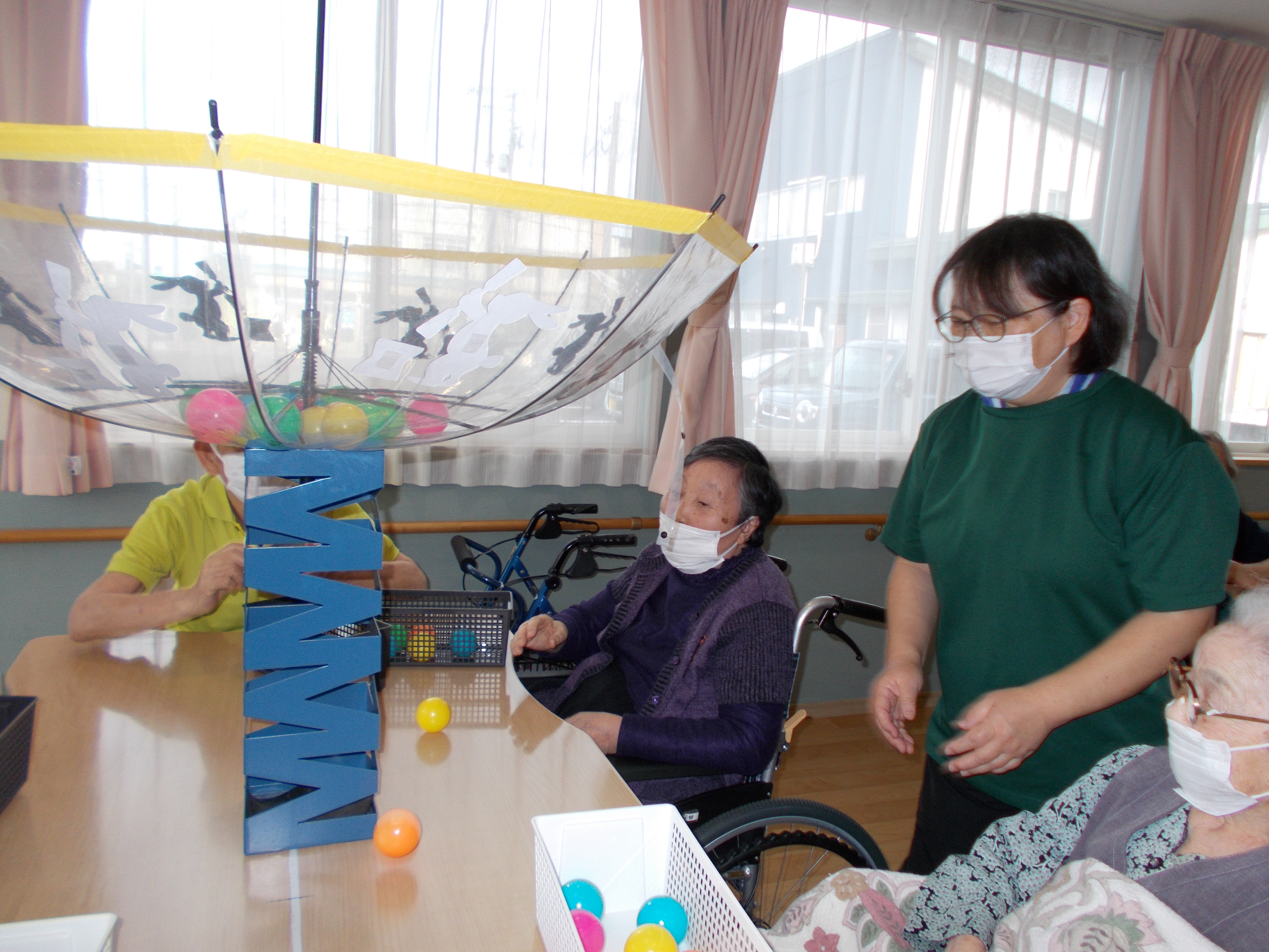 月に向かって 月見団子にみたてボール投げ