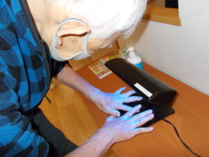 洗った手をブラックライトにかざすと