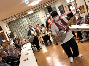 余興のプレゼント スコップ三味線で盛り上げます