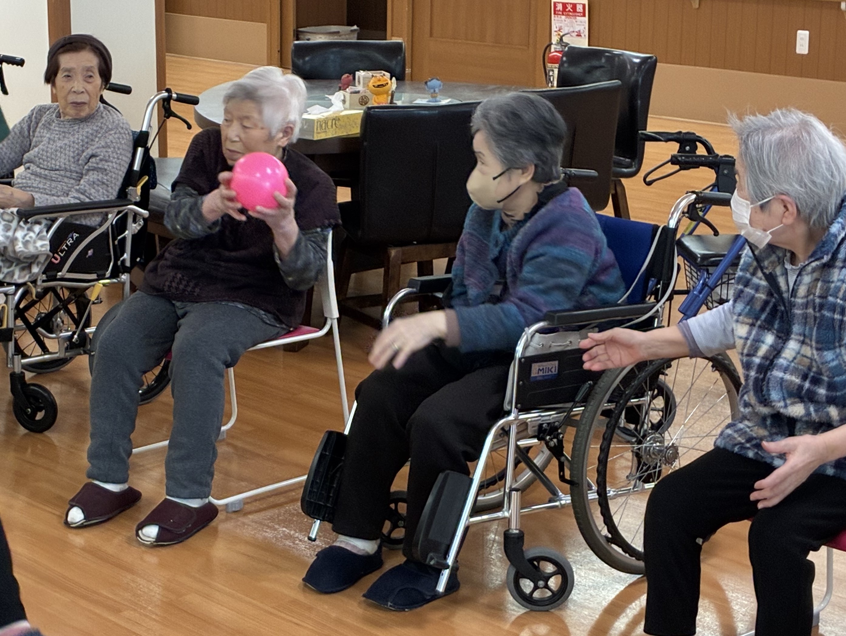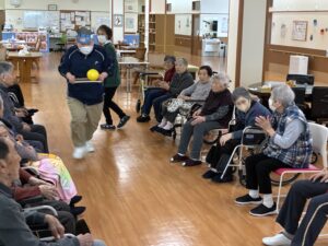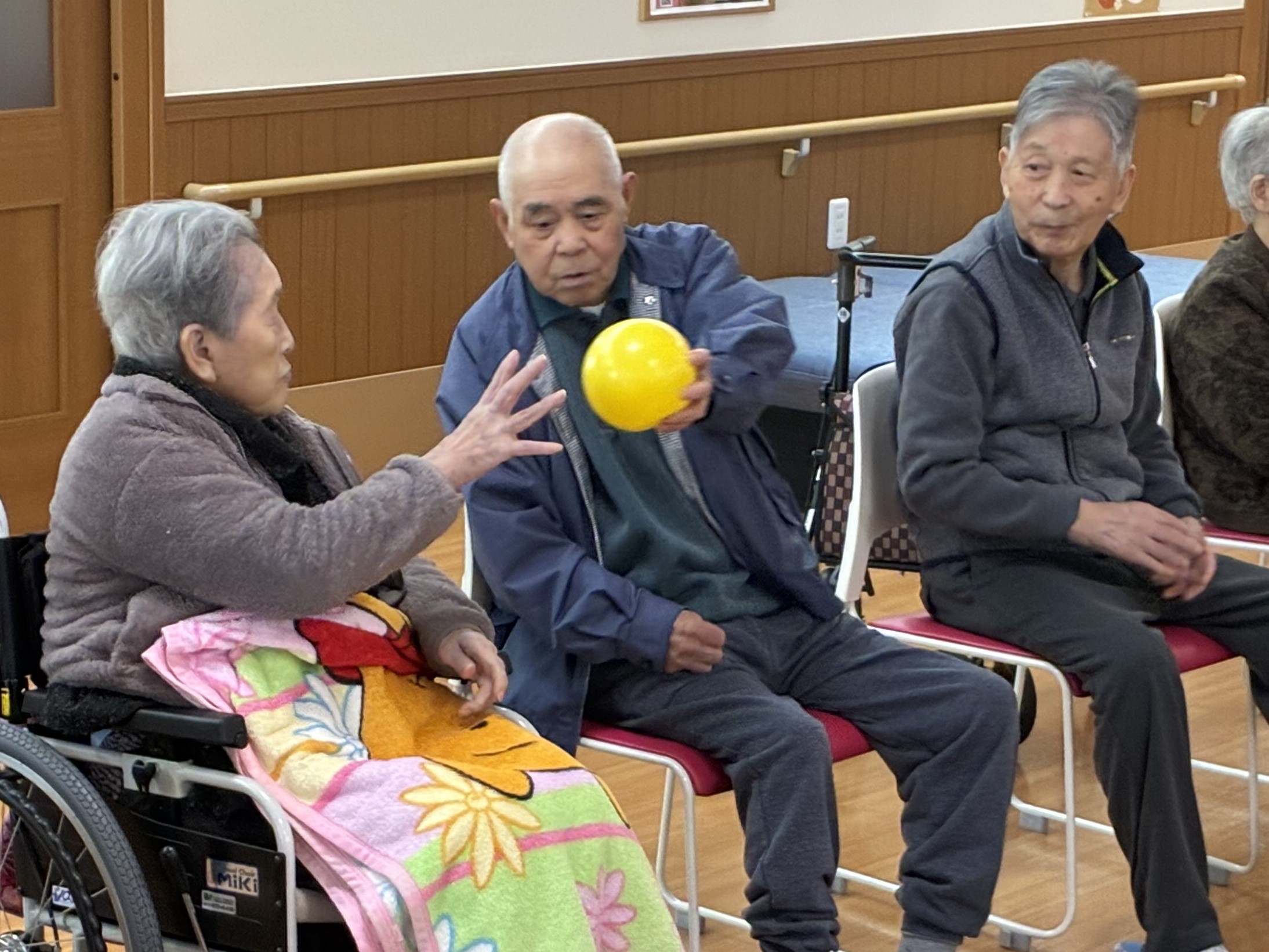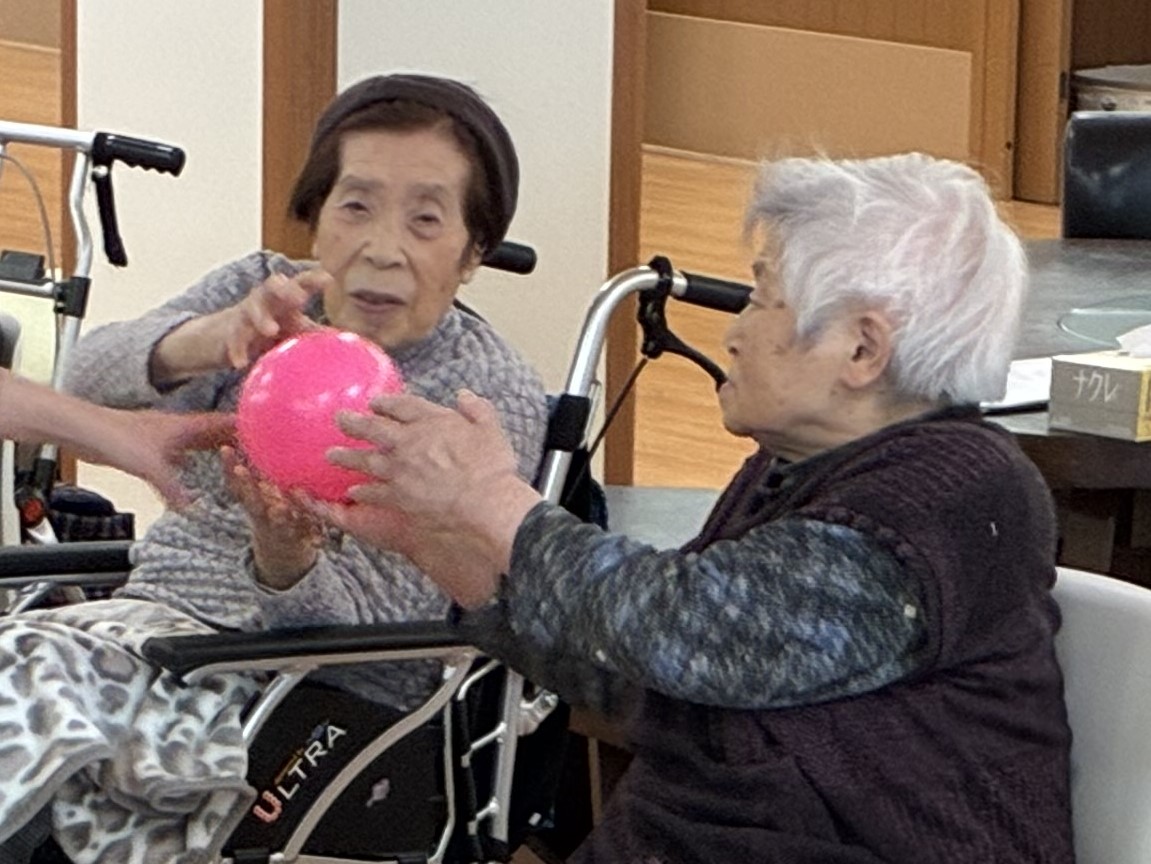 ボールはやさしく隣の人へ渡してくださいね