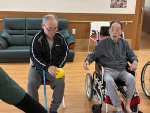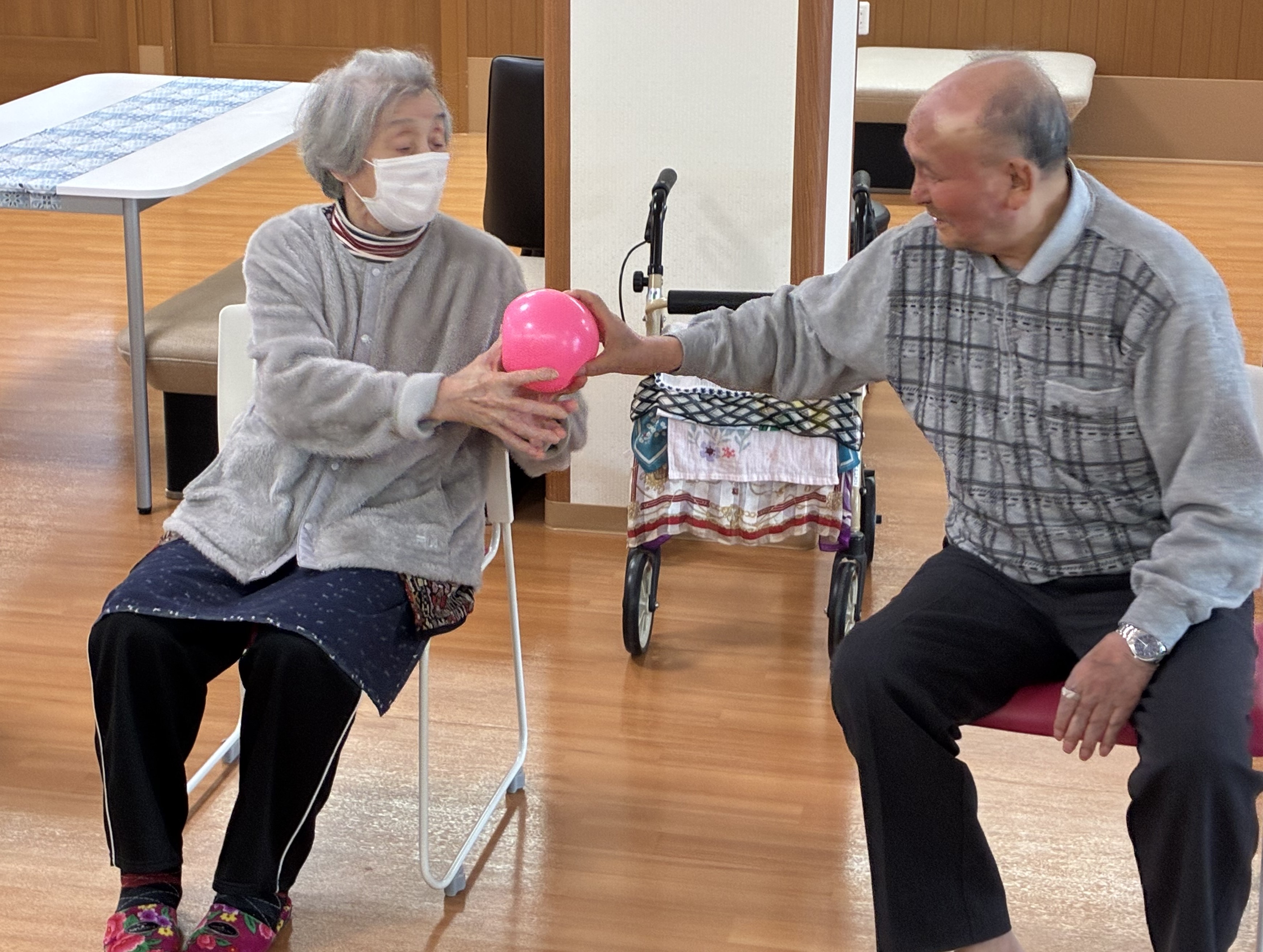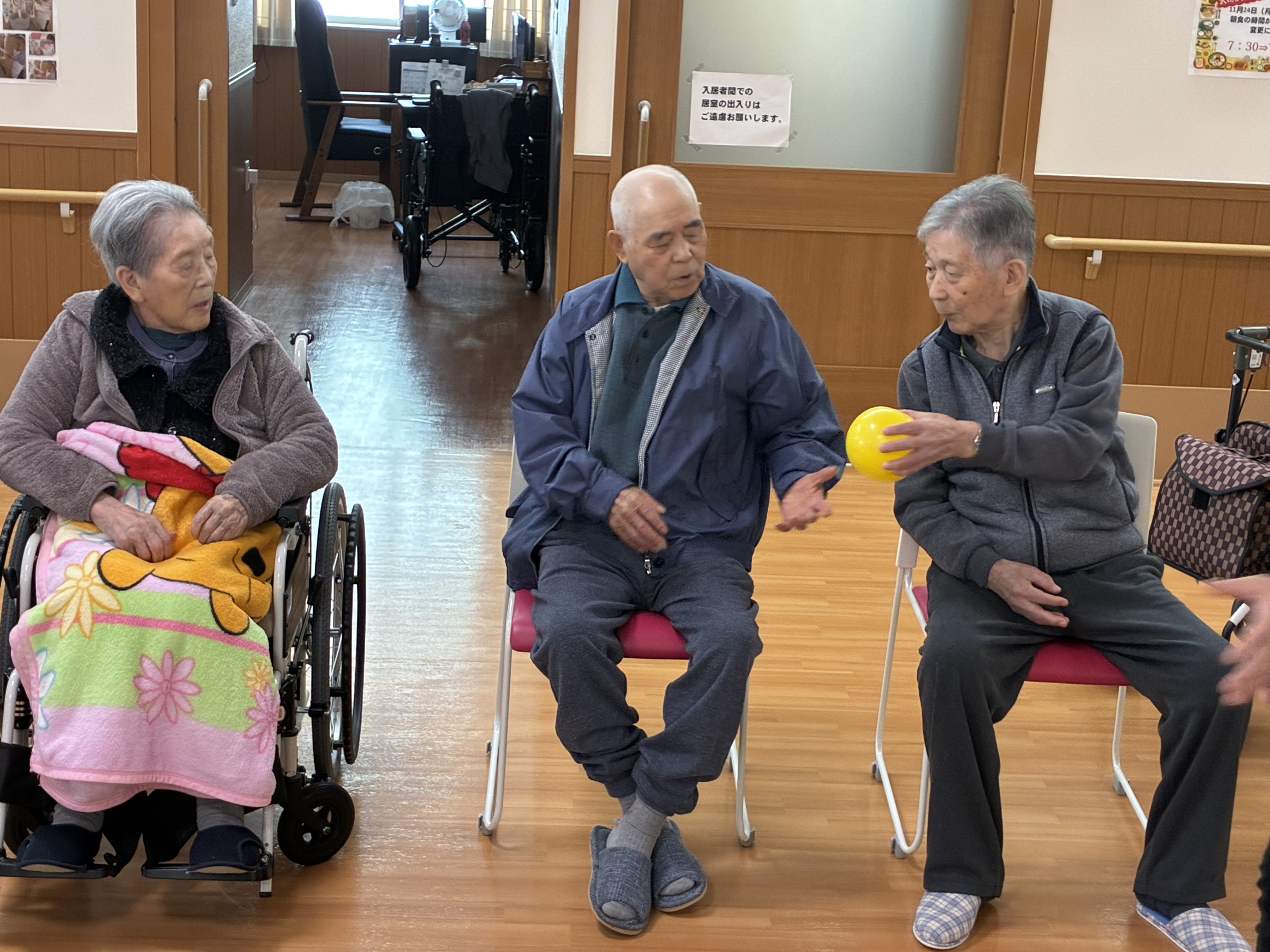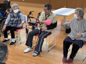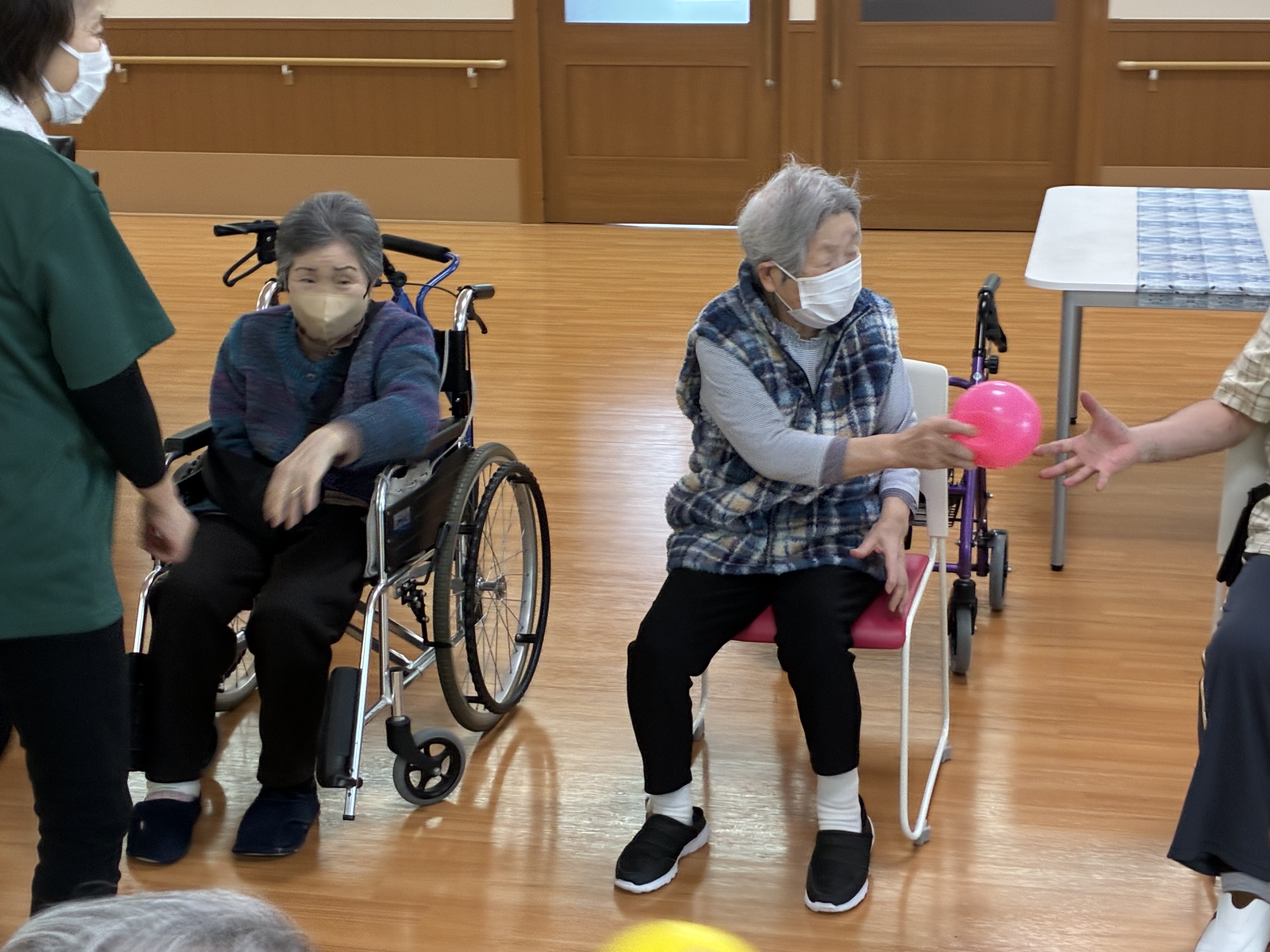 ボールはやさしく隣の人へ渡してくださいね