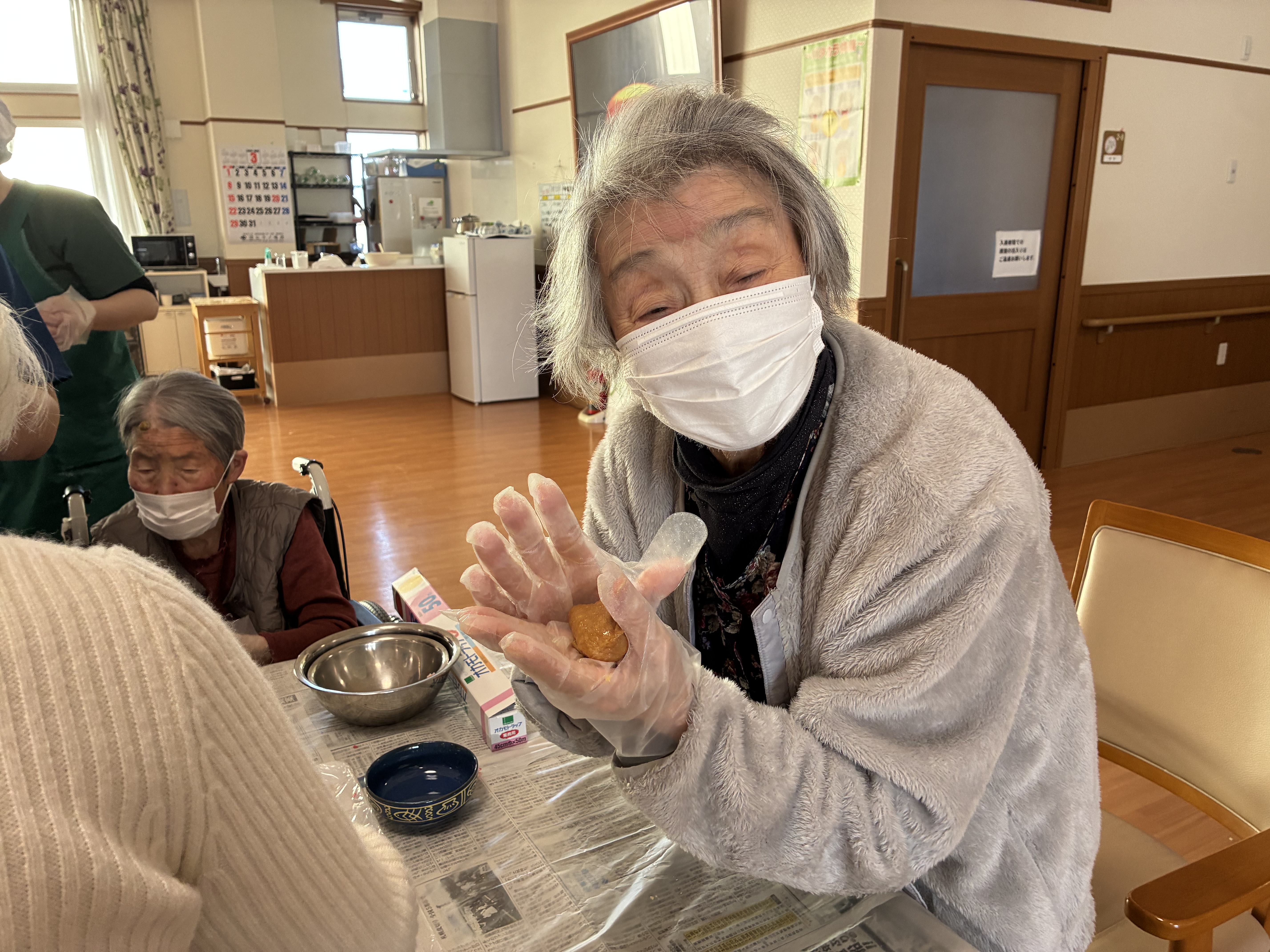 皆さん なれない手袋を付けてても すすす~ってお団子を