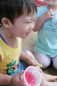 『ぼくも~』とまたまた登場の0歳児ちゃん。1・2歳児ちゃんも負けてませんよ!!