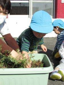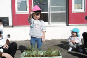 一緒に水やりをしたり、大きくなることへの期待感を
