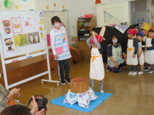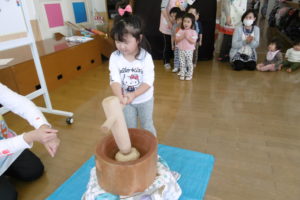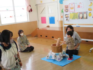 13日(水)は園内もちつき会。子どもたちは朝からワクワク。