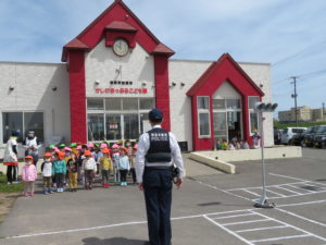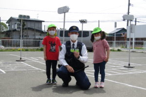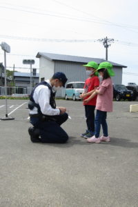指導してくださったお巡りさんに、りんご組さんを代表して
