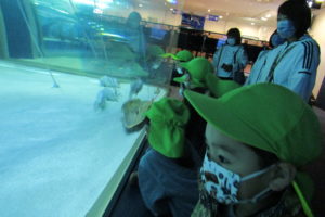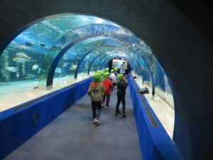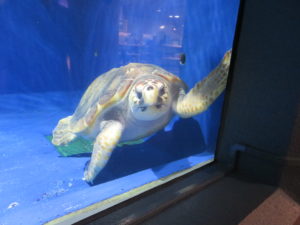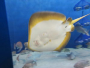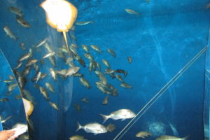 水槽内はウミガメやエイ・サメなどたくさんの種類の魚がいました。