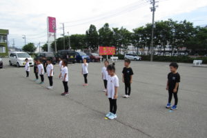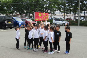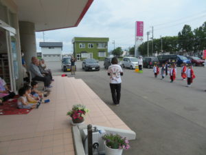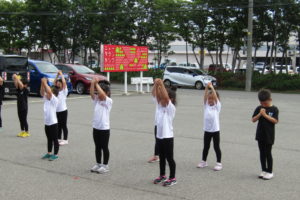 施設の駐車場にて、今年のよさこいと、青の煌めきあおもり国スポ