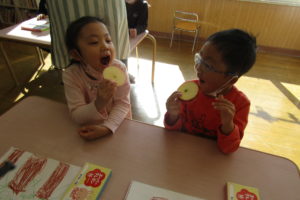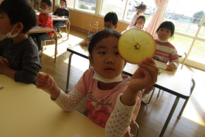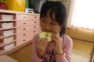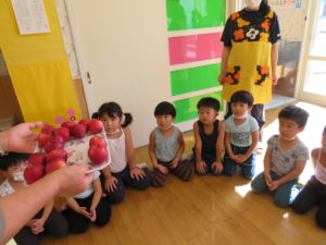 子どもたちはまず『どのりんごがおいしいのかな~・・・』と