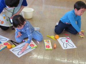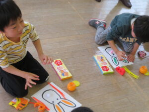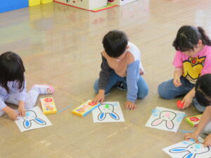 オリビア先生に教えてもらったり、お友だちと教え合ったりしながら