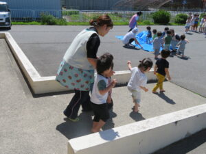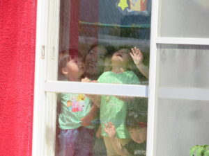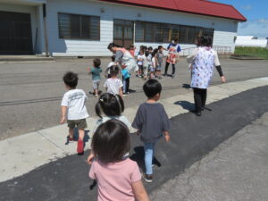 以上児組さんは「第二避難場所」へ避難。