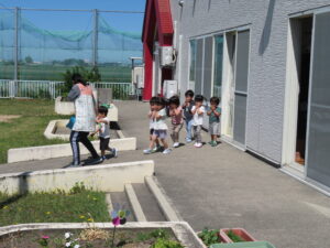 火事!!と聞くと以上児さんは、すぐさま手で口を押さえ
