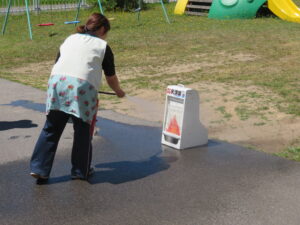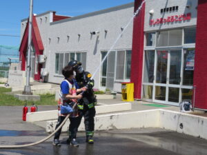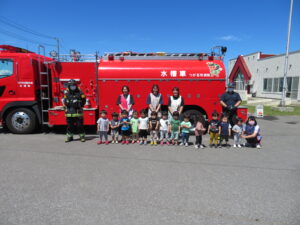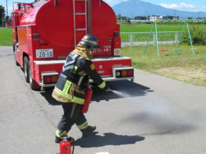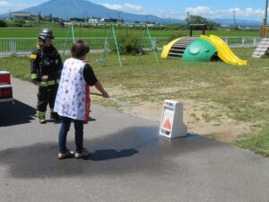 りんご組さん6名が消火活動を体験。