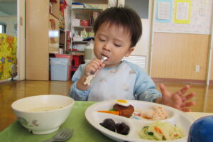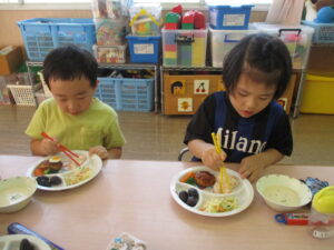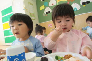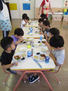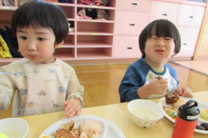 以上児組さんは「うさぎさん、かわいくて食べるのもったいなーい💛」