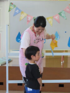 最初に雨の時期に合わせた傘のペープサートでお友だちを