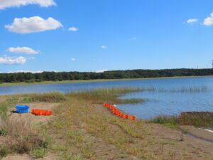 木造にある平滝沼で、稚魚『フナ』の放流
