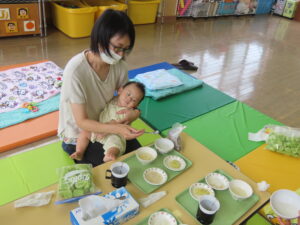 ママ達も離乳食の柔らかさや素材の味などを確かめて