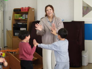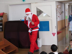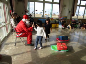 お話も終わり、「あわてんぼうのサンタクロース」の歌を歌い終わると…