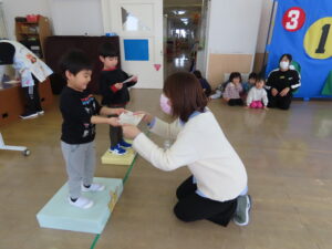 表彰式では、園長先生から賞状をもらい