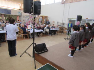 最初はたくさんのおじいちゃん、おばあちゃん、職員さんに緊張し・・・