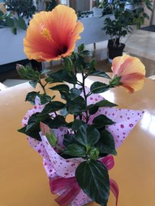 ハイビスカスの元気なパワーをもらって一段と素敵な笑顔です。