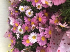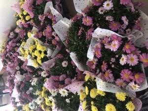 桑寿園の玄関には一足早く春の訪れ、お花畑となりました。