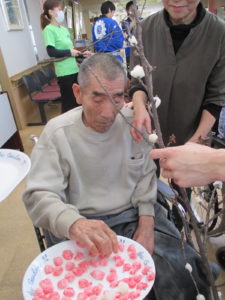 餅花にして、お正月飾りをみんなで作りました。