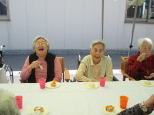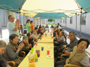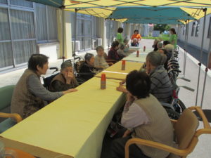 暑いくらいのある日桑寿園中庭にて