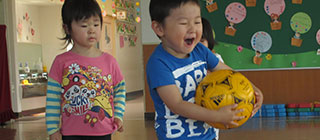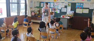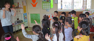 英語の講師を月2回招いて年中組・年長組の子どもたちが、英語や異国の文化にふれています。